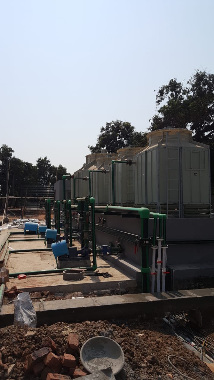 Cooling Tower Design and Installation with Pipe Lines and Pumps .